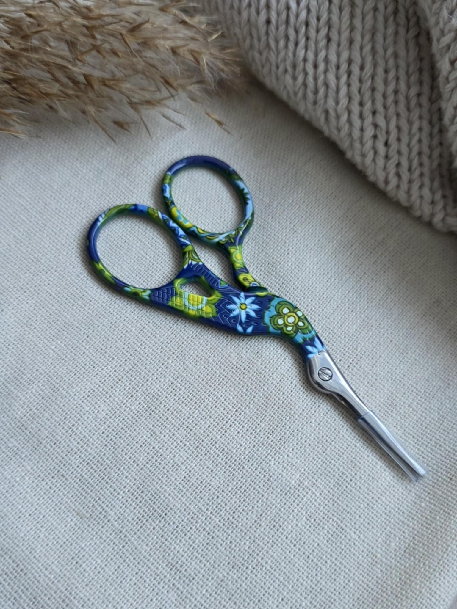 Broderisaks med storkemotiv. Fin og sylskarp saks, som er veldig god å klippe med.