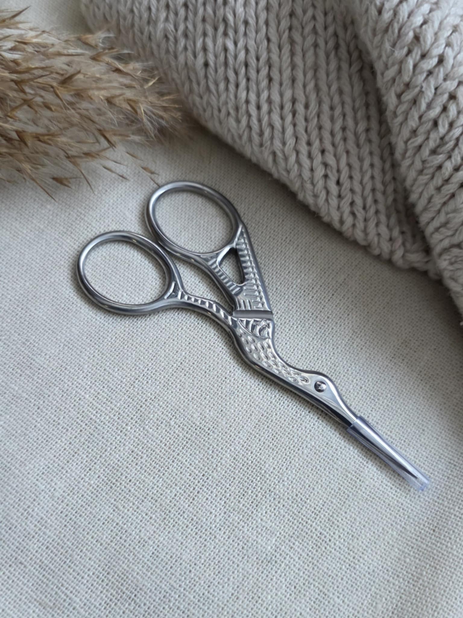 Broderisaks med storkemotiv. Fin og sylskarp saks, som er veldig god å klippe med.