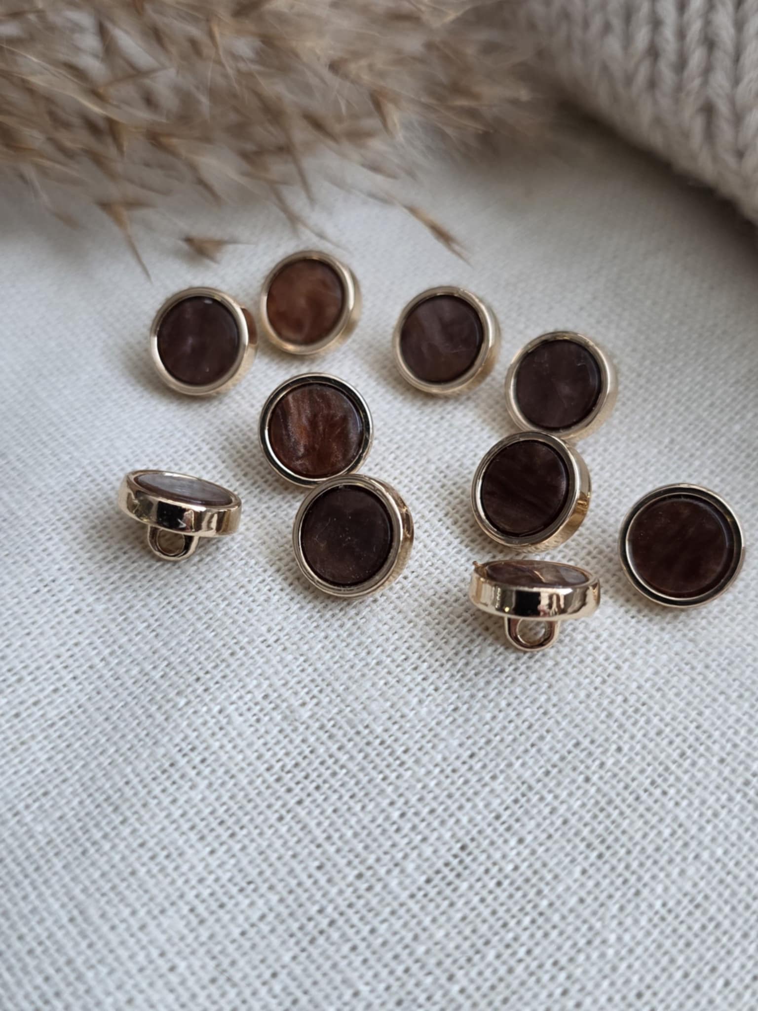 Brune knapper i plast.