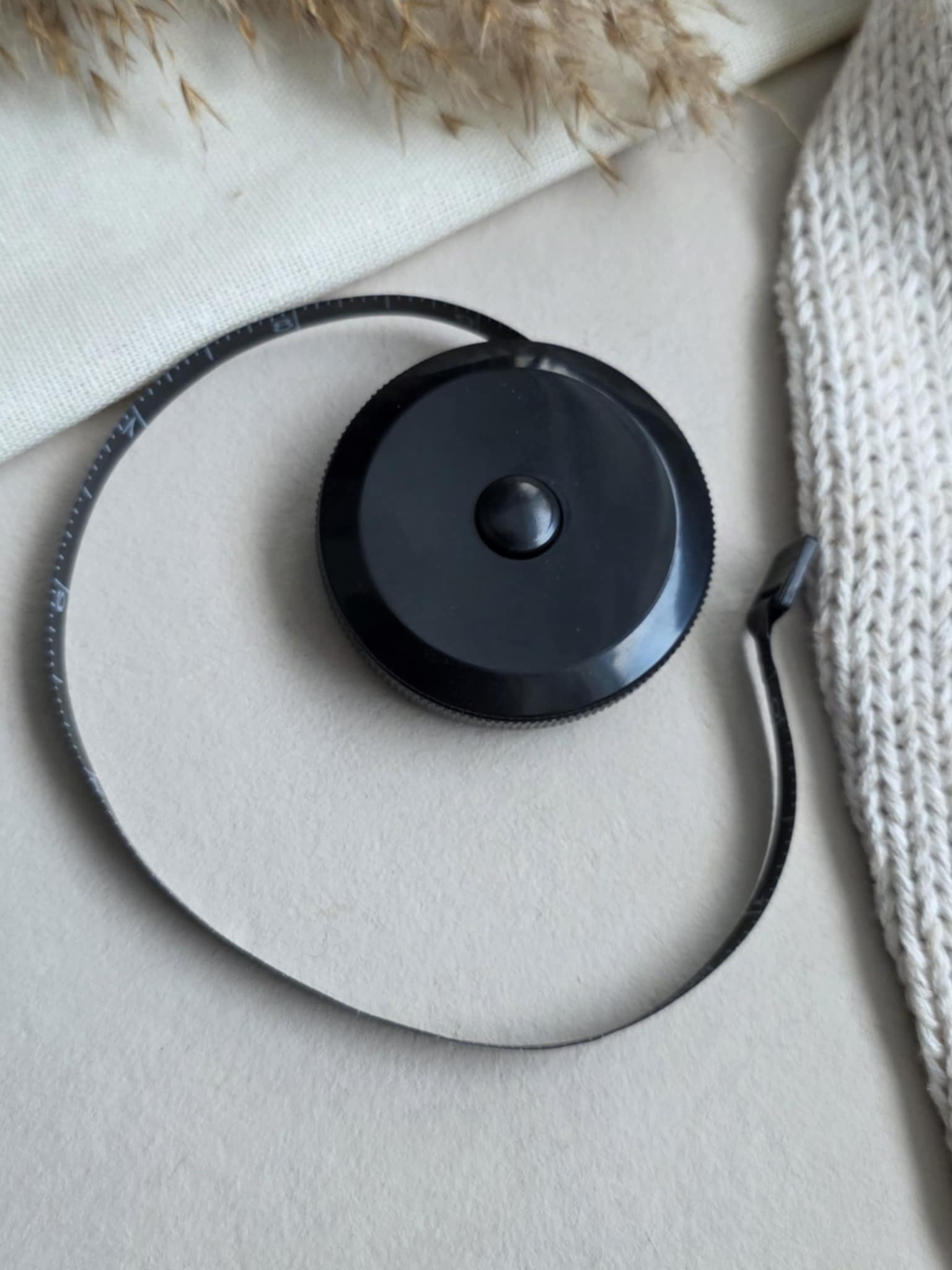 Målebåndet låses når du slutter og dra det ut. Med et enkelt trykk på midten, rulles det raskt og enkelt inn igjen.