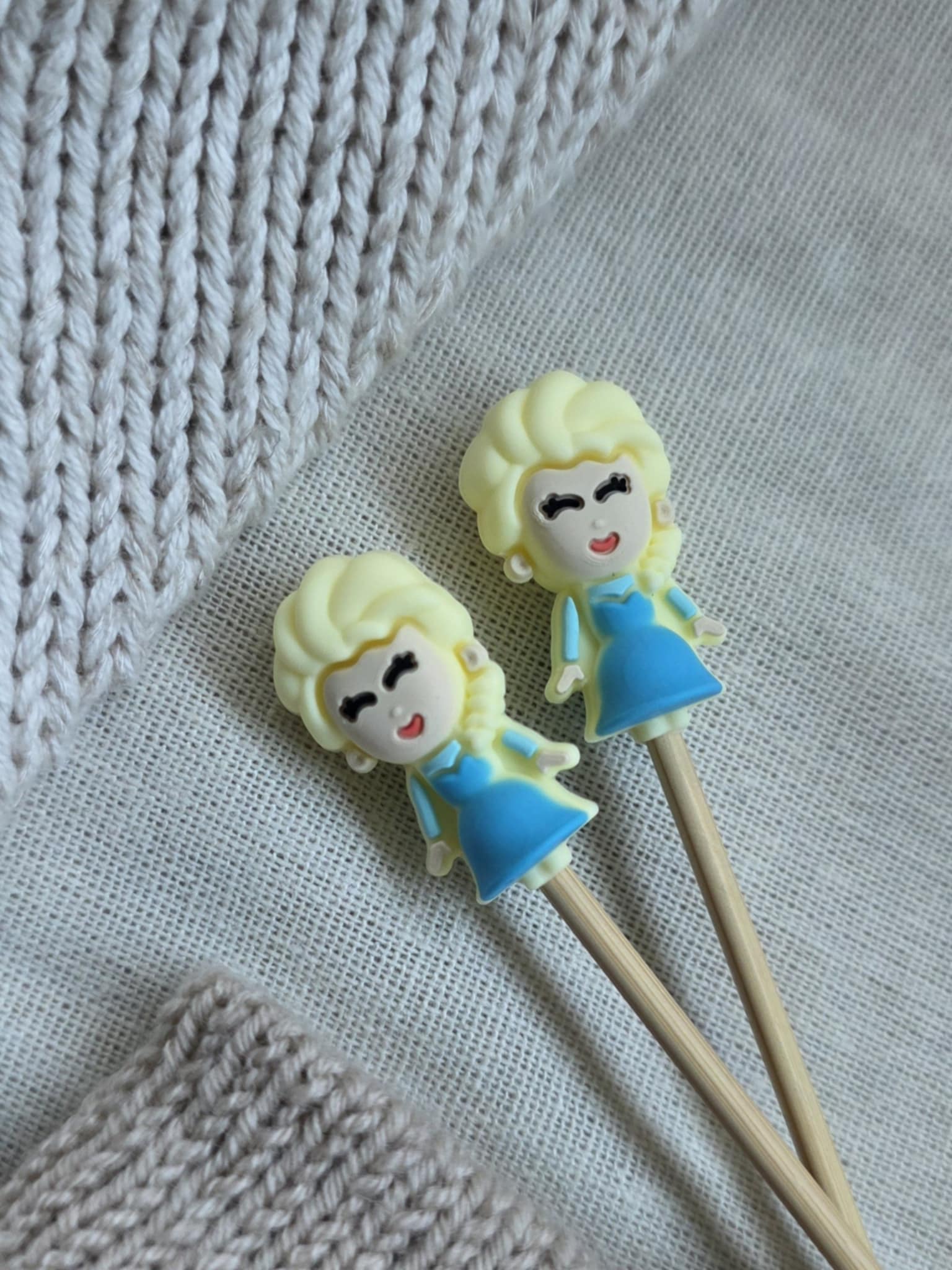 Laget i myk silikon. Brukes til å sette på pinnene når strikketøyet hviler, slik at maskene ikke faller av.