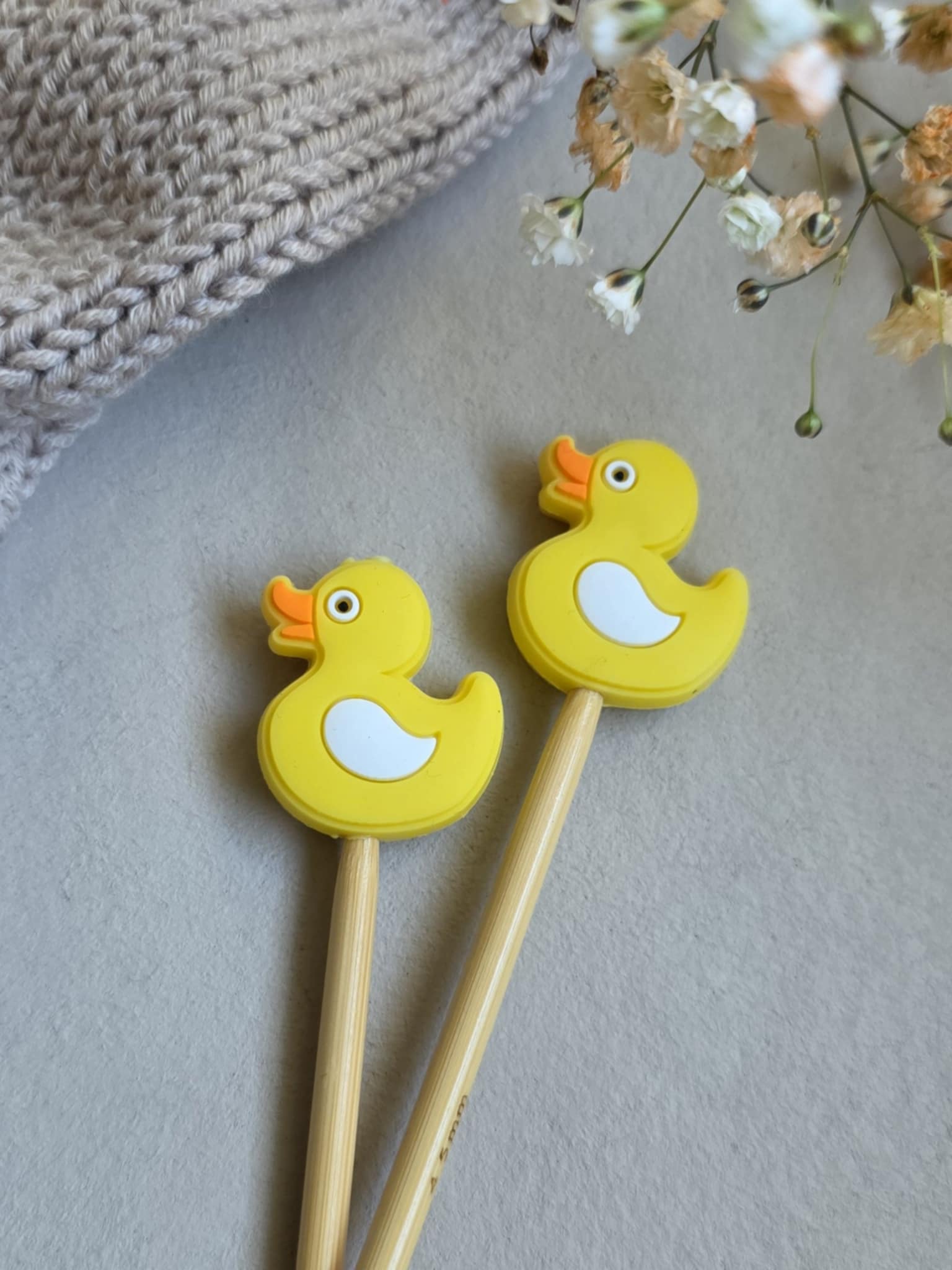 Brukes til å sette på pinnene når strikketøyet hviler, slik at maskene ikke faller av.