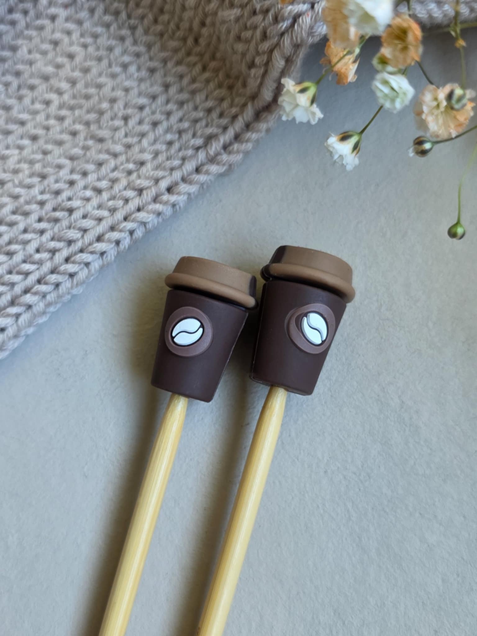 Brukes til å sette på pinnene når strikketøyet hviler, slik at maskene ikke faller av.