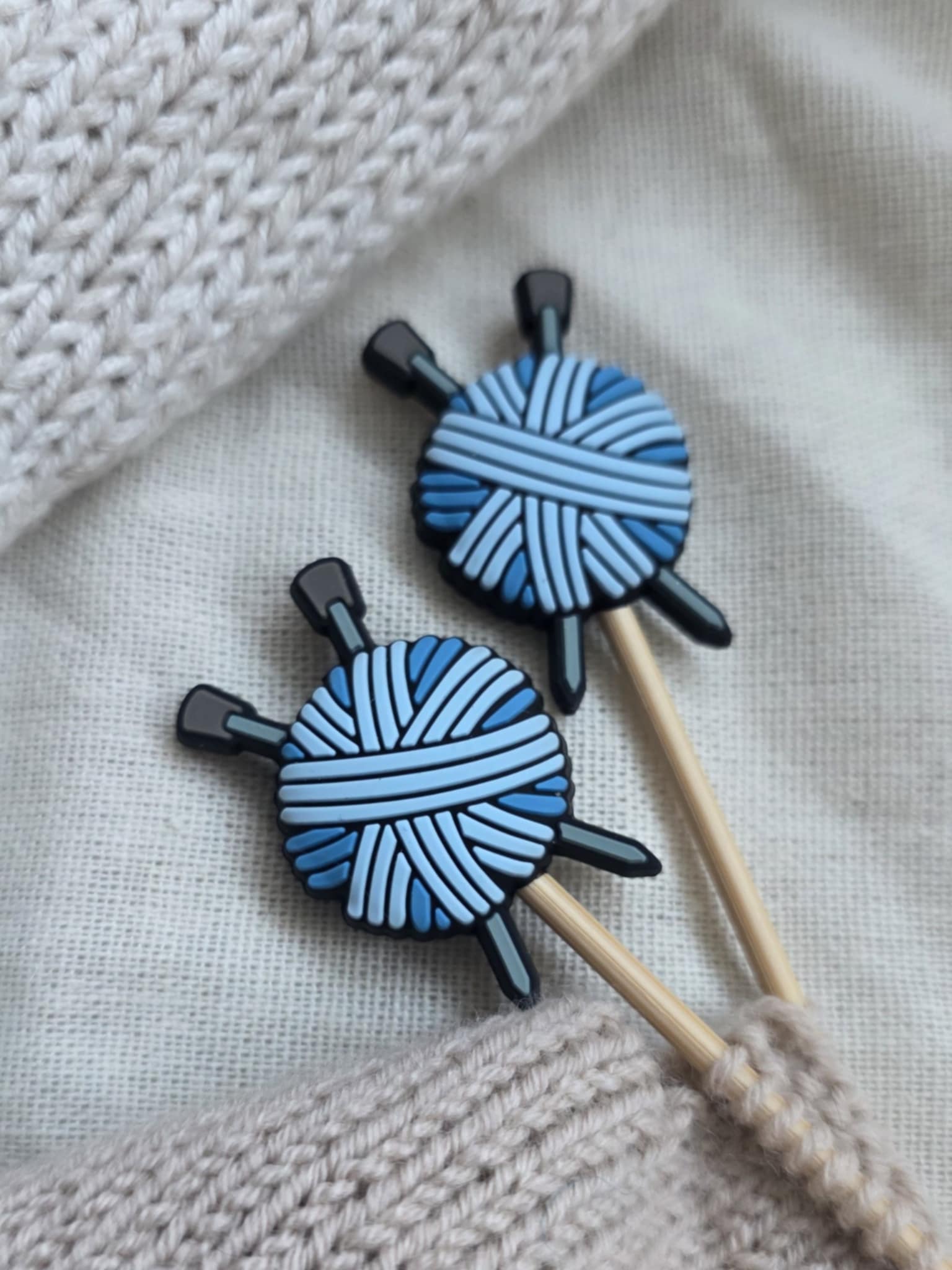 Laget i myk silikon. Brukes til å sette på pinnene når strikketøyet hviler, slik at maskene ikke faller av. Passer fra pinne 2.5mm-9mm,