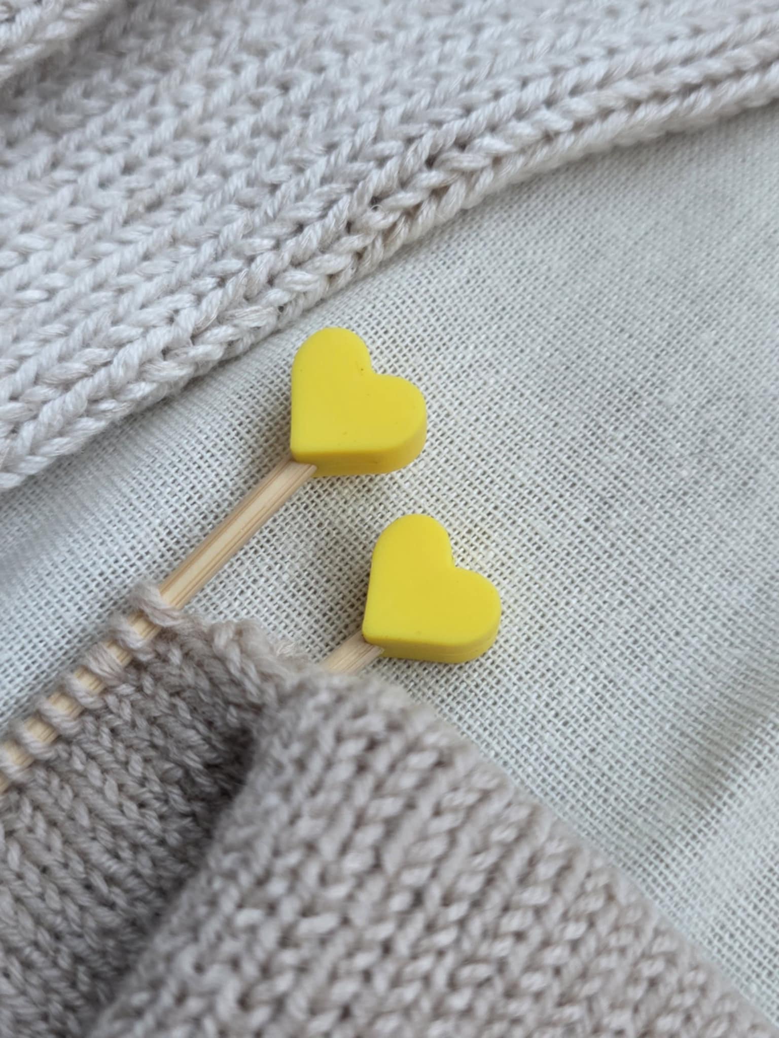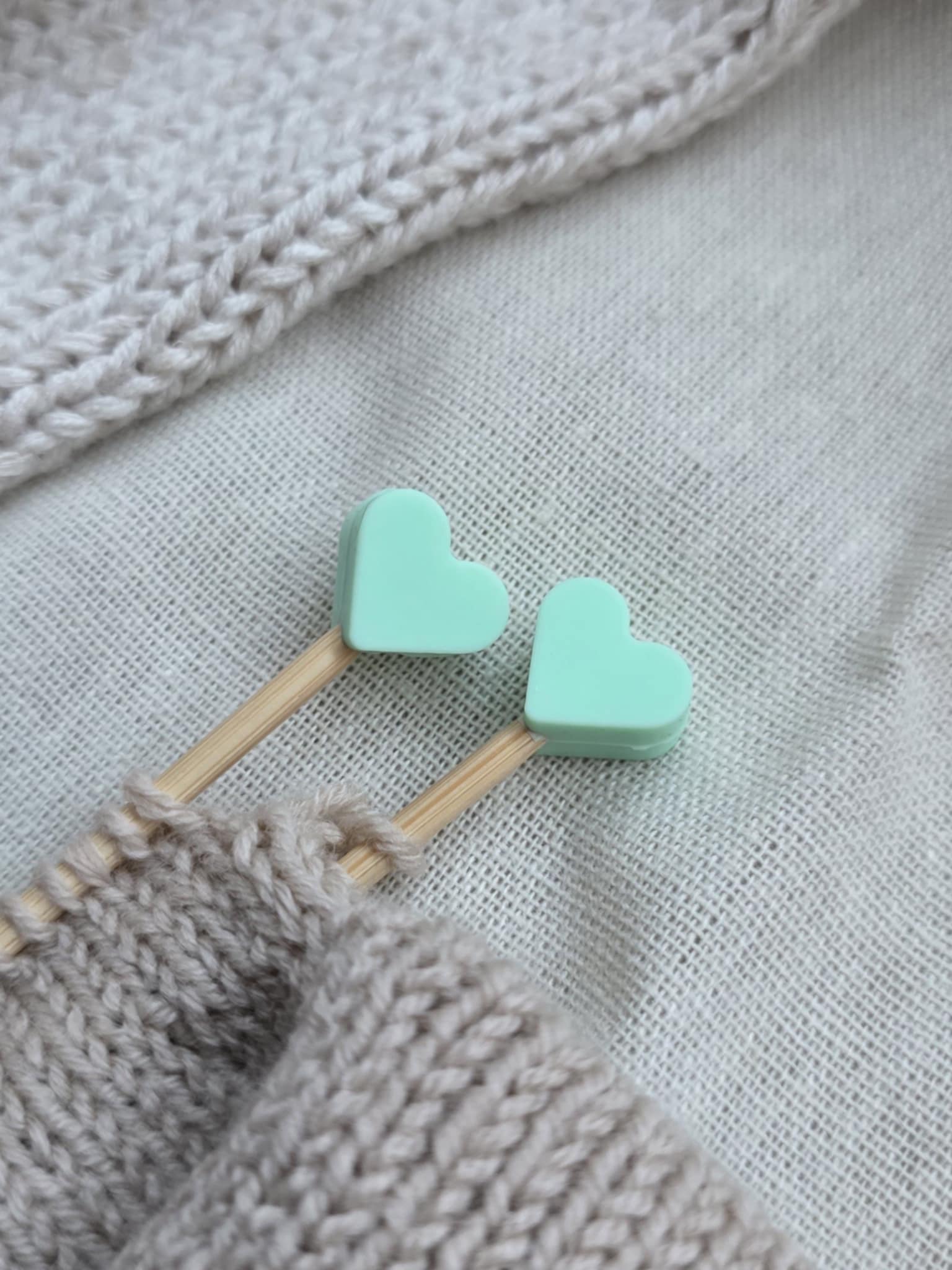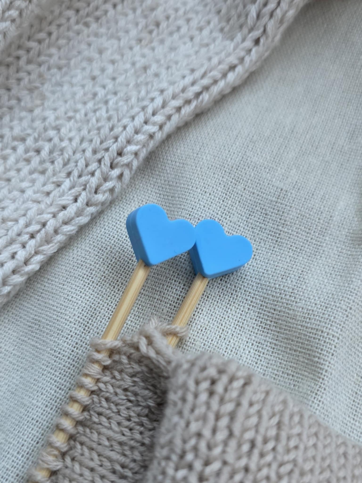 Brukes til å sette på pinnene når strikketøyet hviler, slik at maskene ikke faller av.