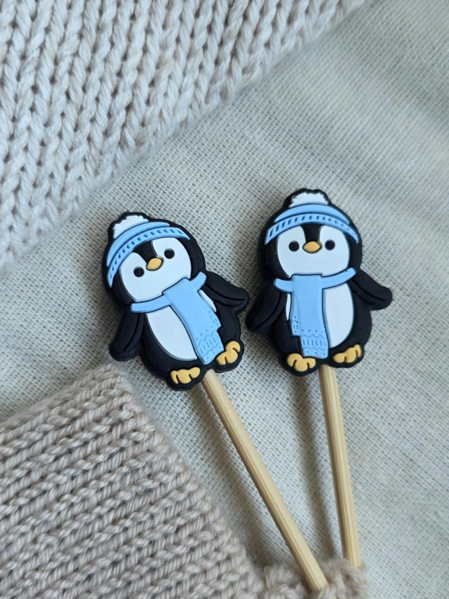 Brukes til å sette på pinnene når strikketøyet hviler, slik at maskene ikke faller av.