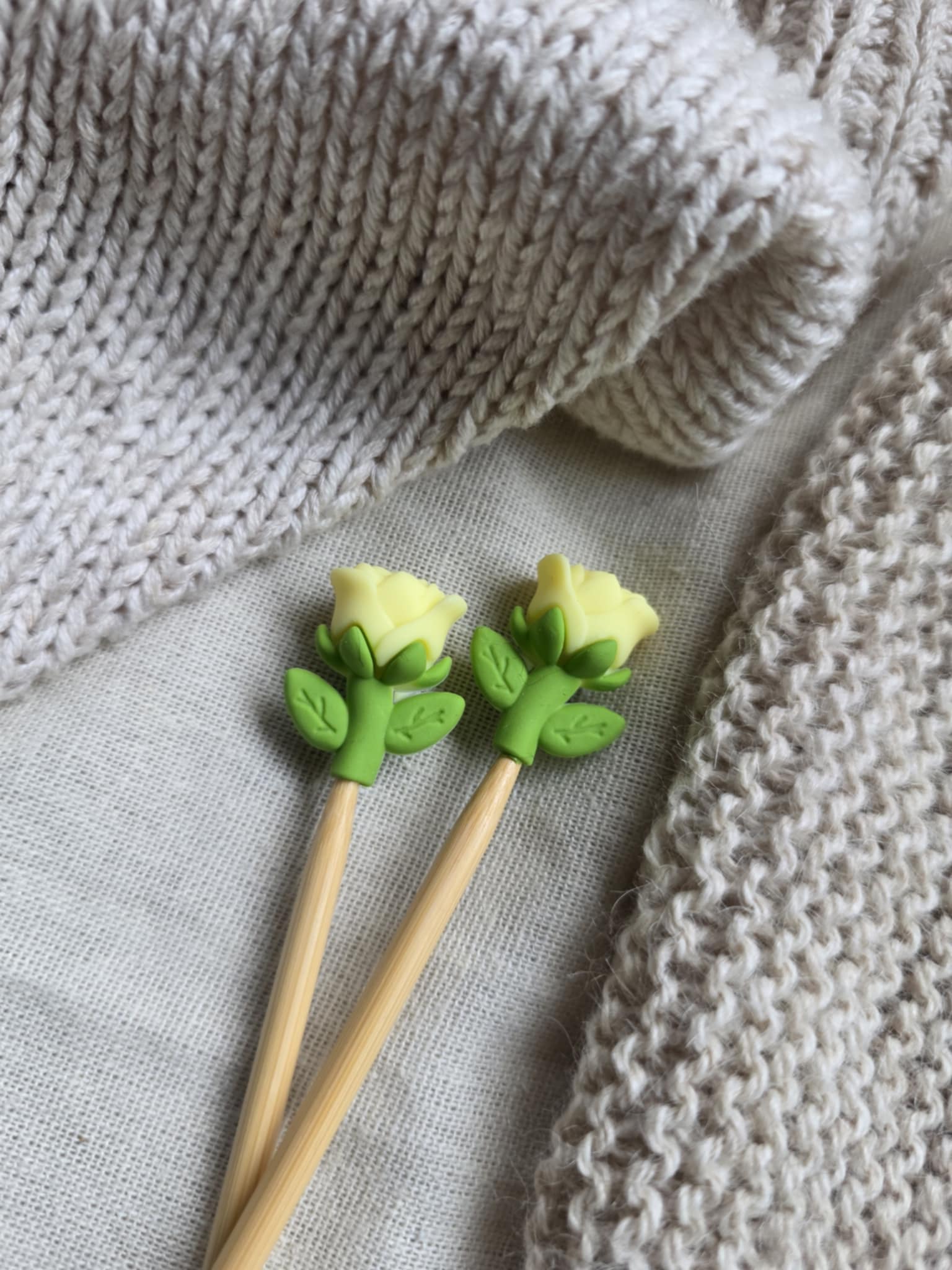 Laget i myk silikon. Brukes til å sette på pinnene når strikketøyet hviler, slik at maskene ikke faller av.