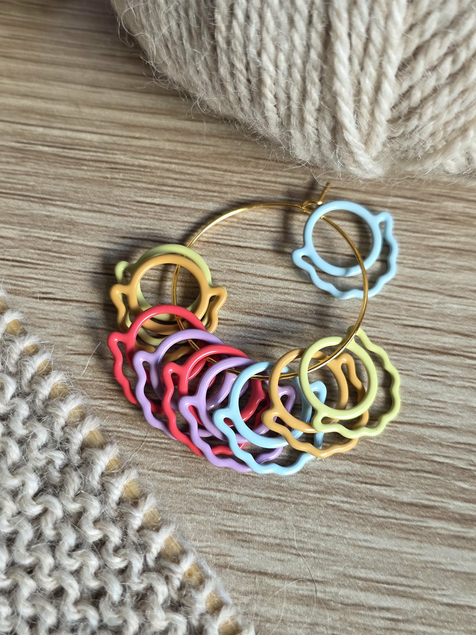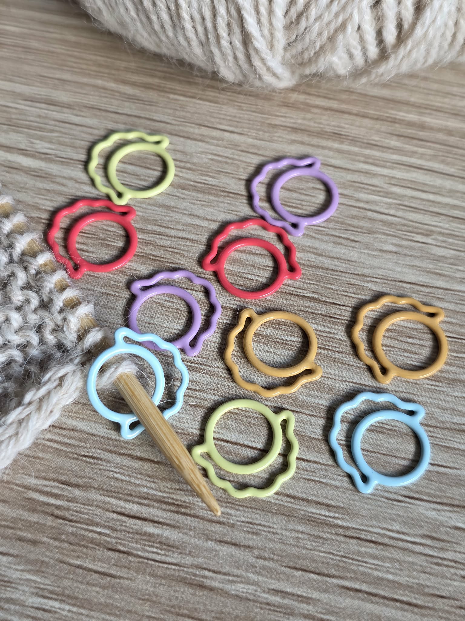 Søte enkle maskemarkørene med sauemotiv. Settet består av 10 lukkede ringer i forskjellige farger.
