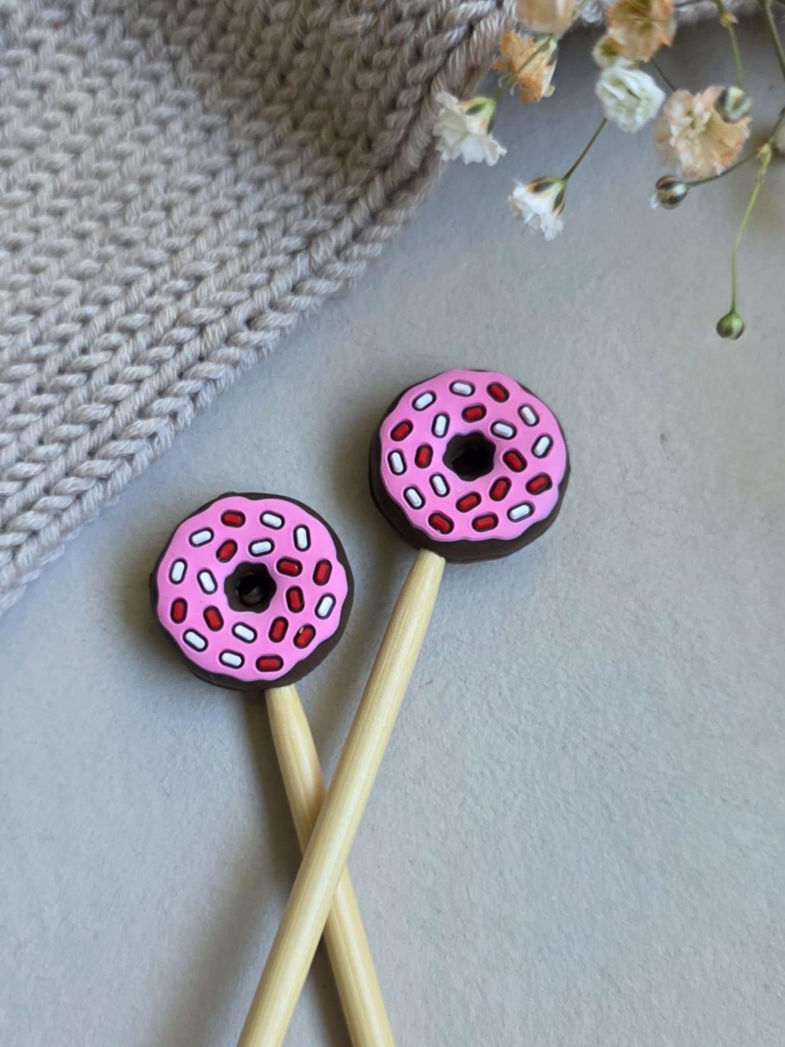 Brukes til å sette på pinnene når strikketøyet hviler, slik at maskene ikke faller av.