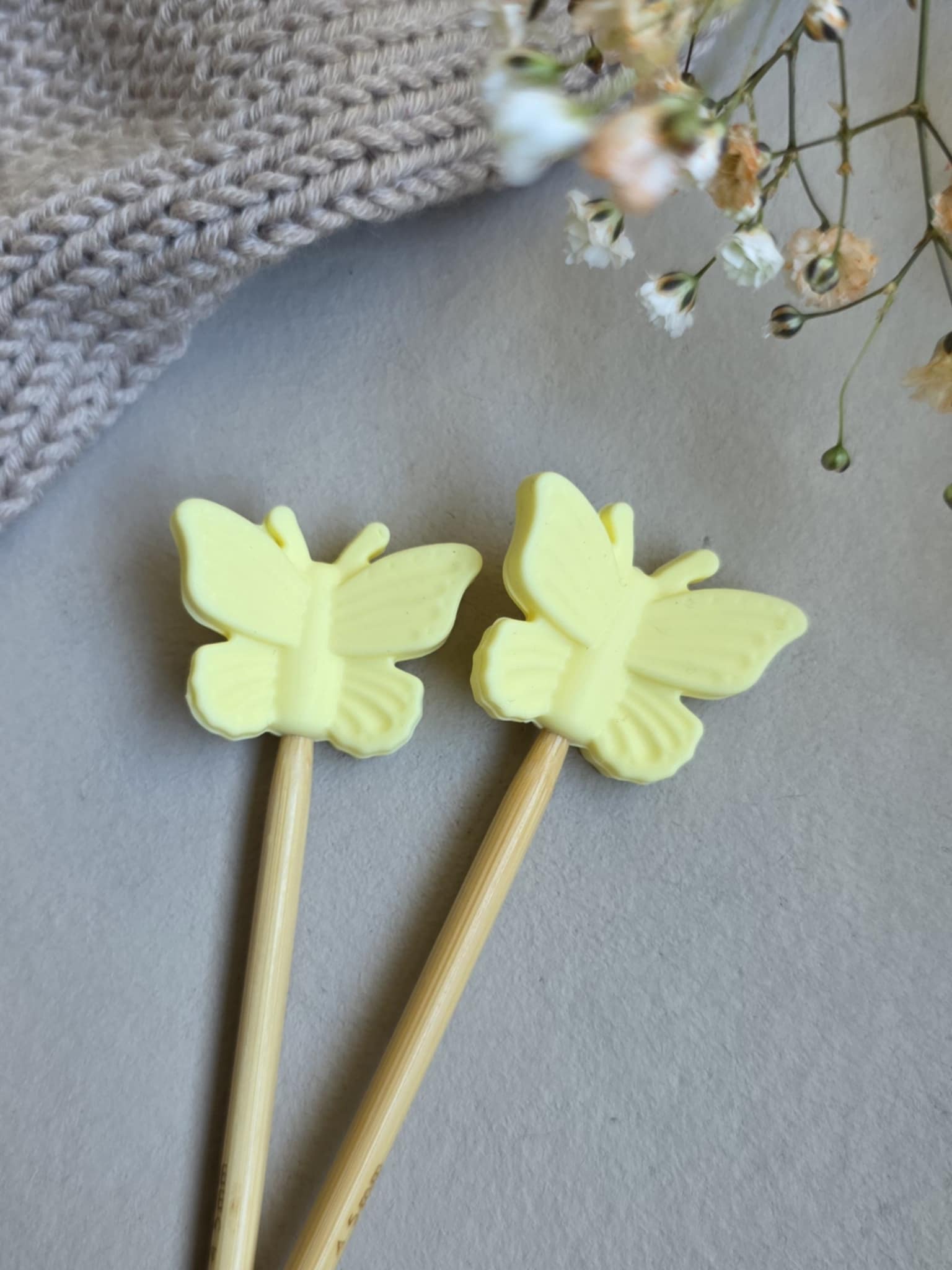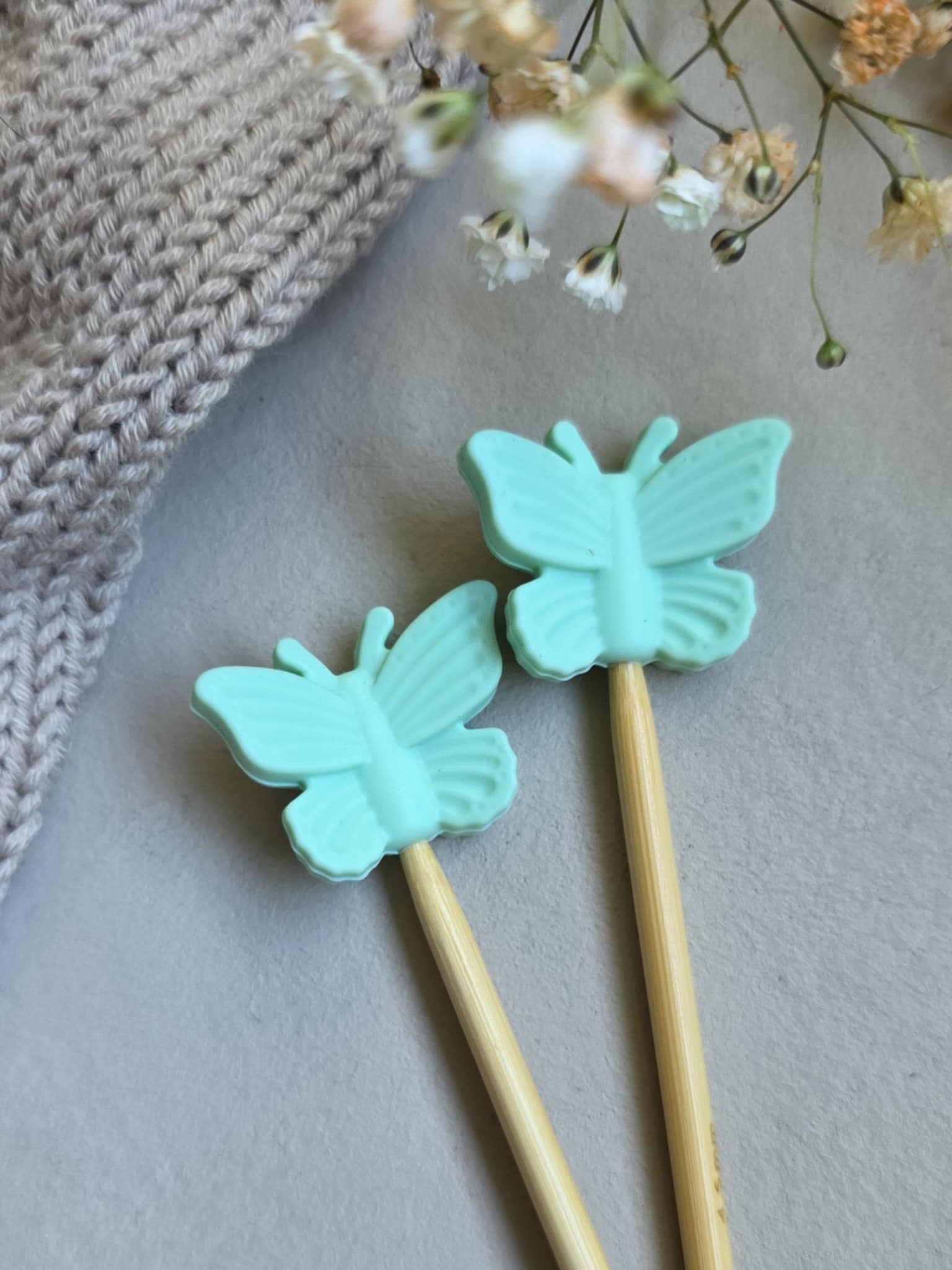 Laget i myk silikon. Brukes til å sette på pinnene når strikketøyet hviler, slik at maskene ikke faller av.
