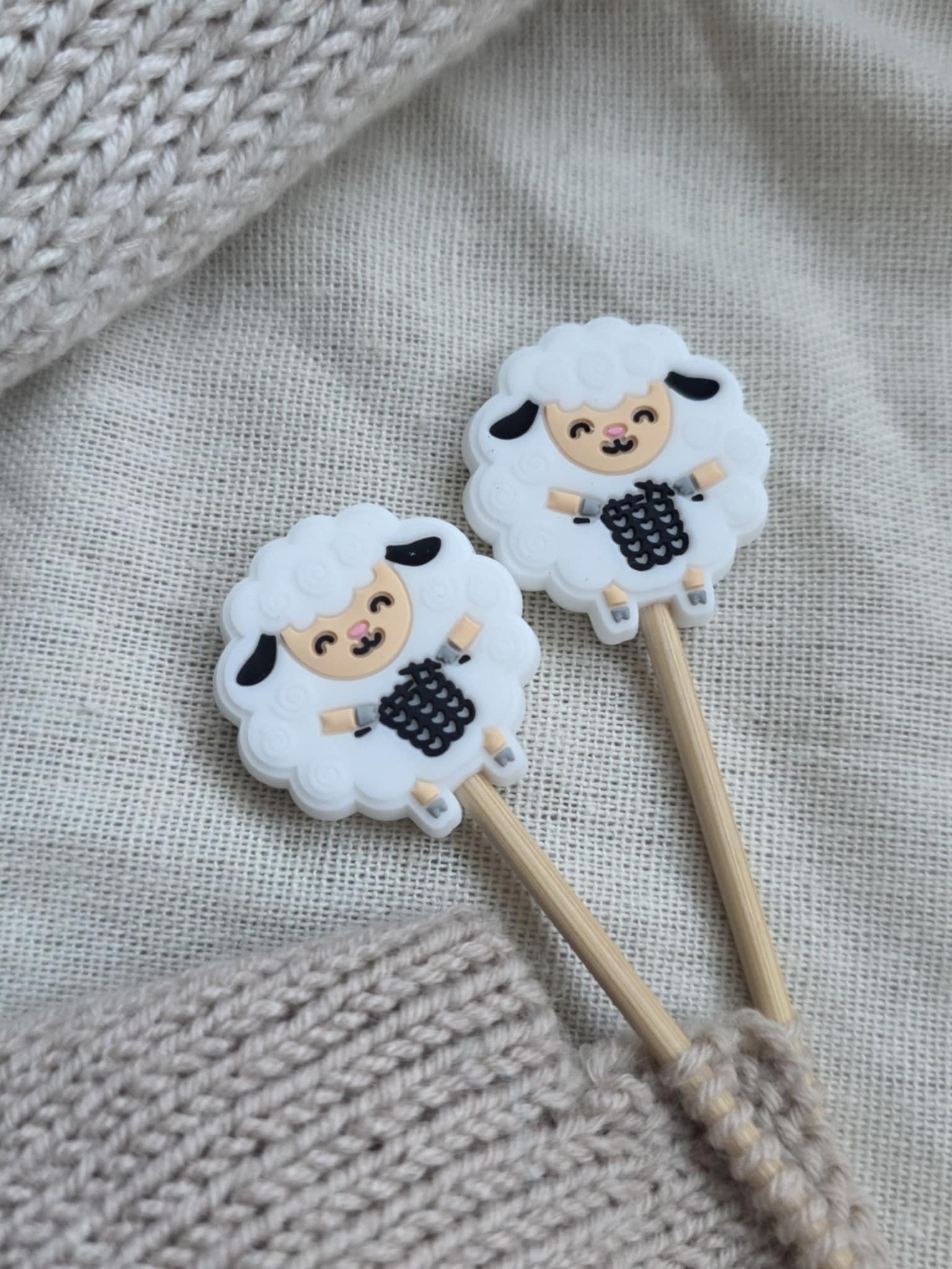 Laget i myk silikon. Brukes til å sette på pinnene når strikketøyet hviler, slik at maskene ikke faller av. Passer fra pinne 2.5mm-9mm,