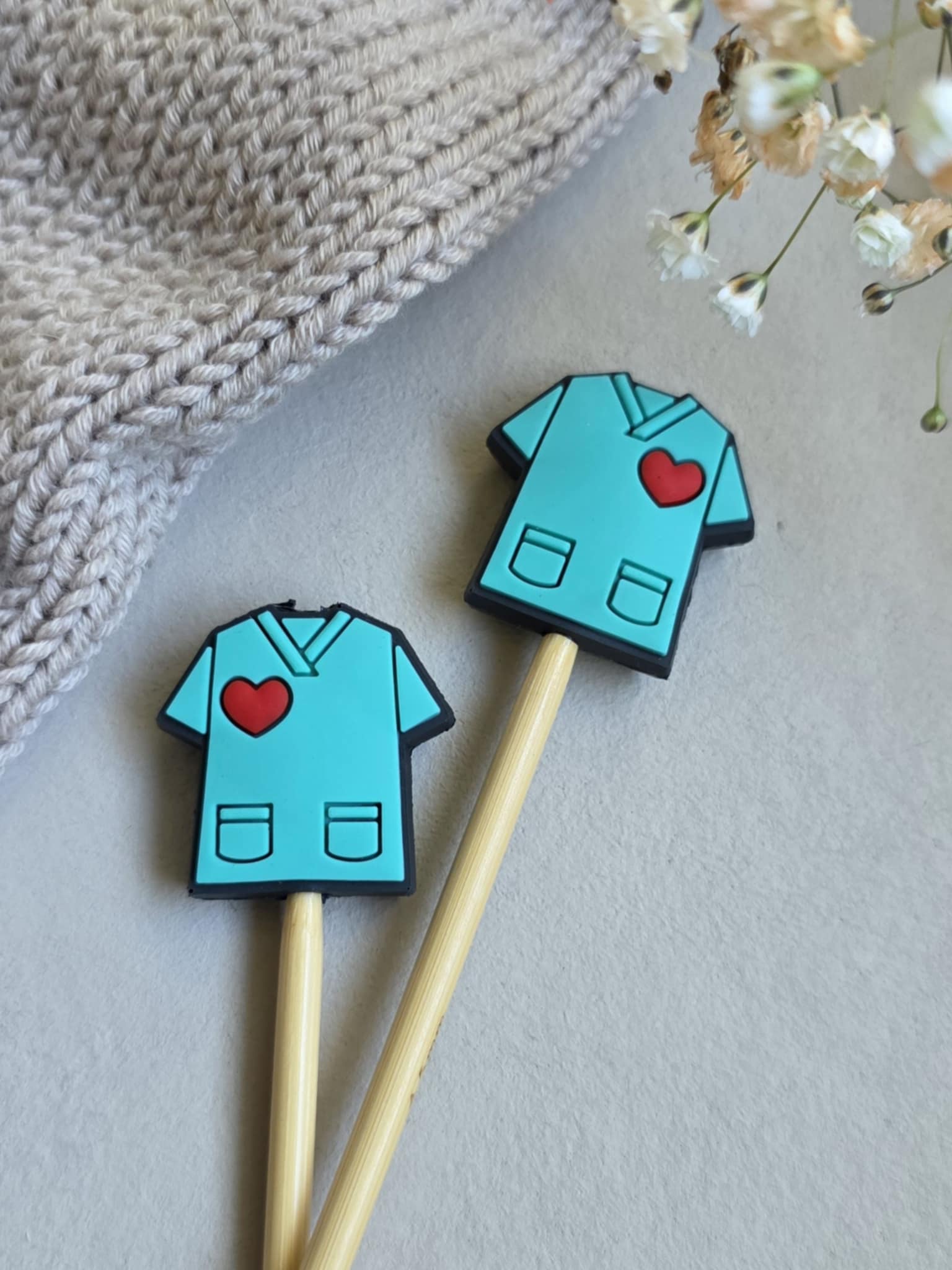 Laget i myk silikon. Brukes til å sette på pinnene når strikketøyet hviler, slik at maskene ikke faller av.