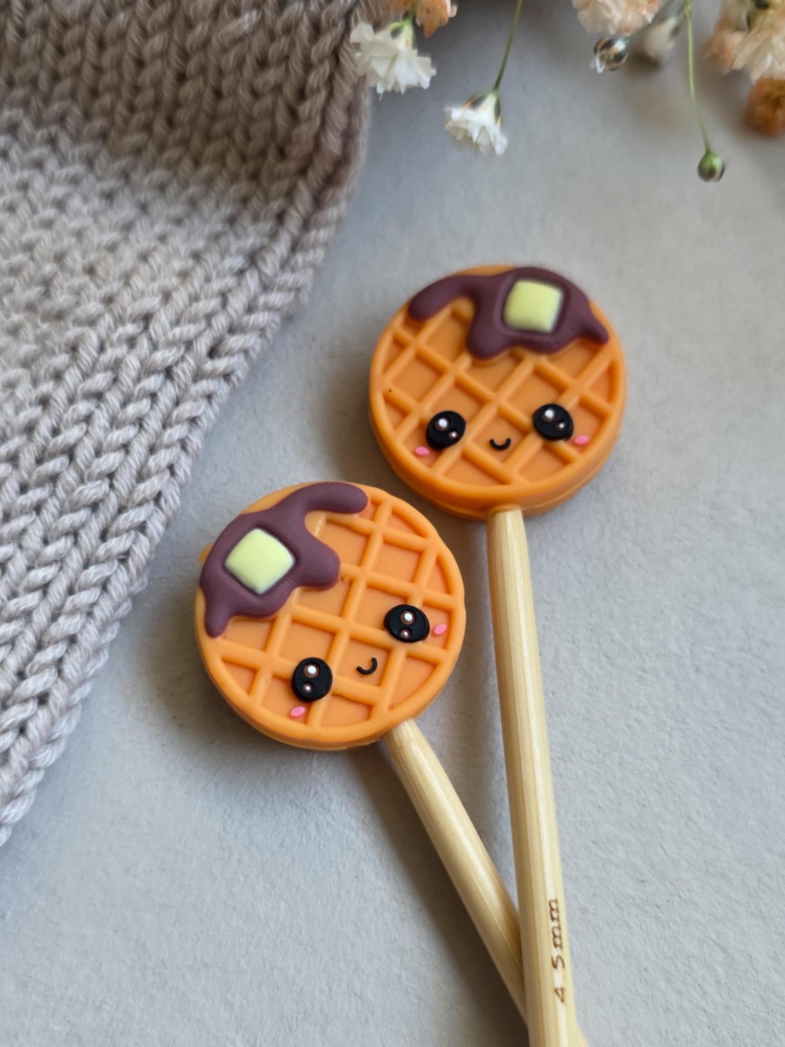 Brukes til å sette på pinnene når strikketøyet hviler, slik at maskene ikke faller av.