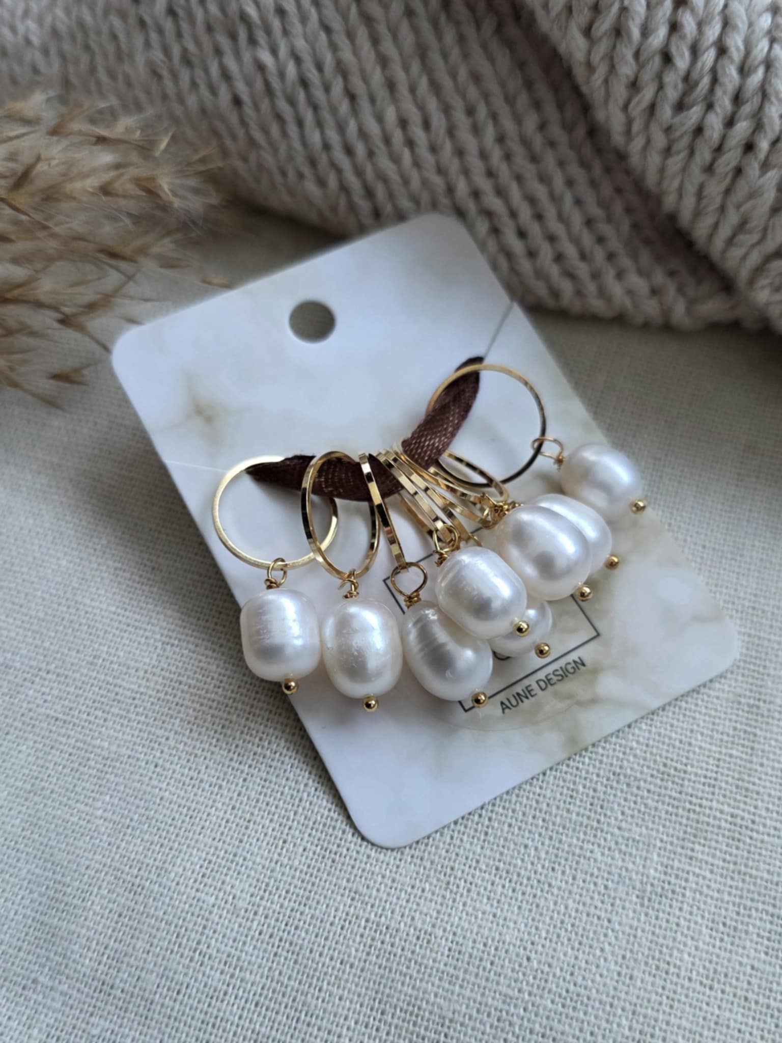 Håndlaget raglansett med 8 maskemarkører i ferskvannsperler.