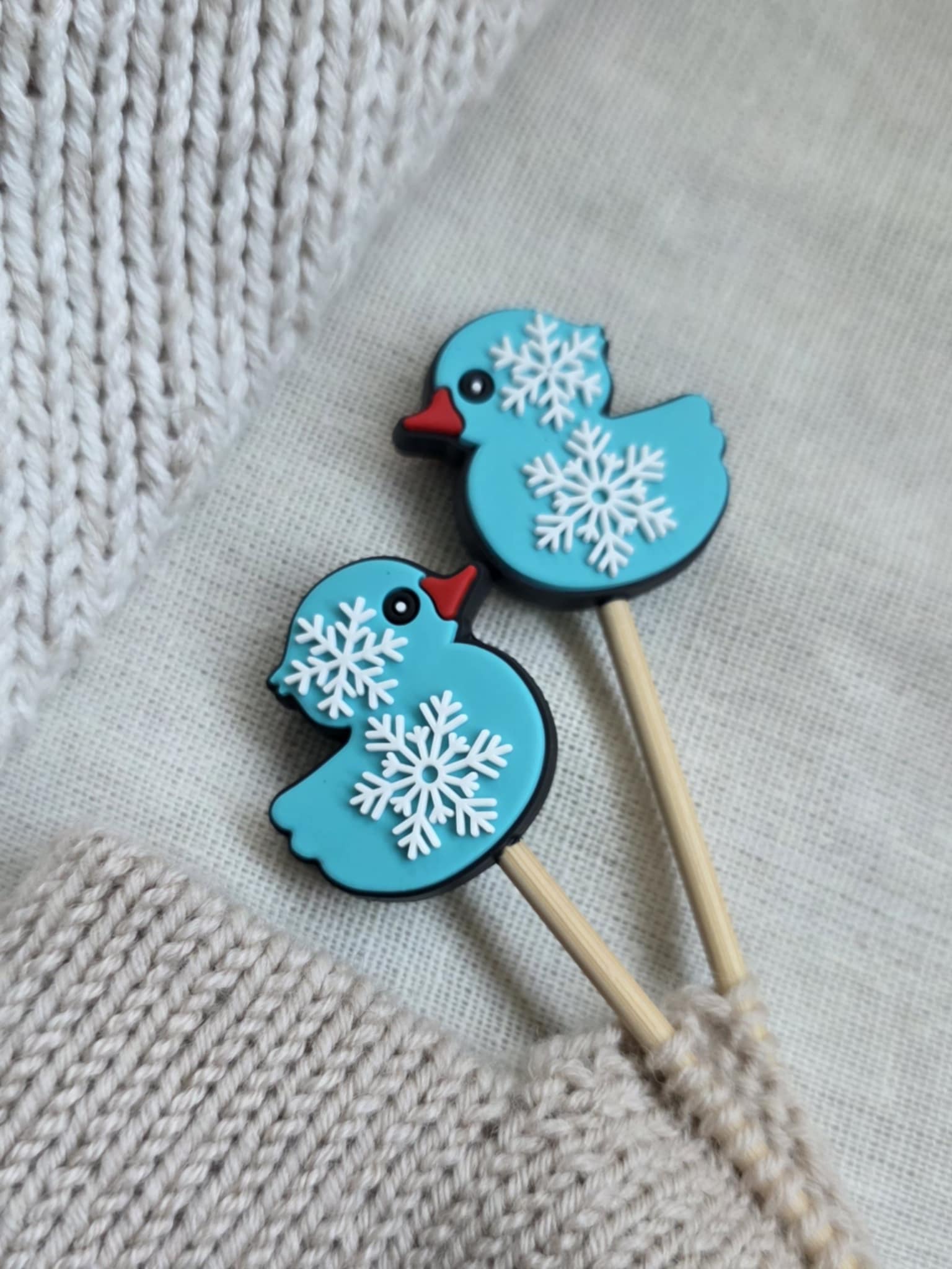 Laget i myk silikon. Brukes til å sette på pinnene når strikketøyet hviler, slik at maskene ikke faller av.